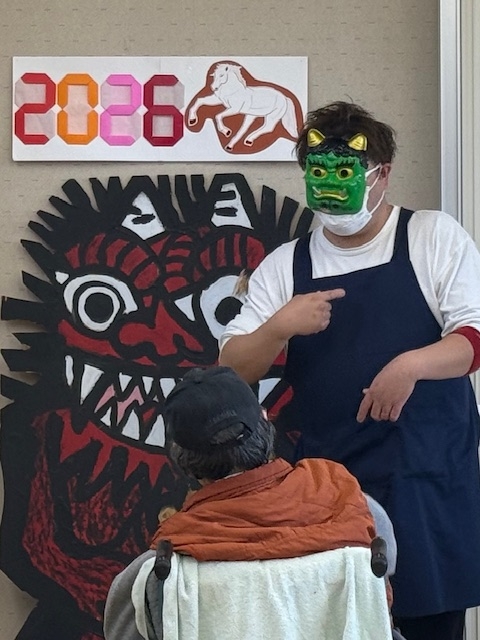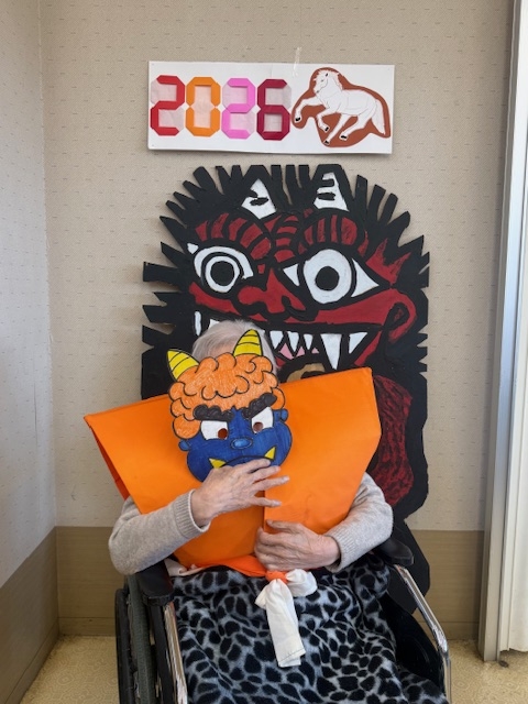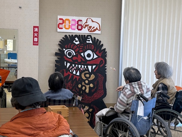 今年は、2月3日が節分です。みんなにもっともっと幸せが来ることを願い、「福は内!」と言いながら豆をまきました。