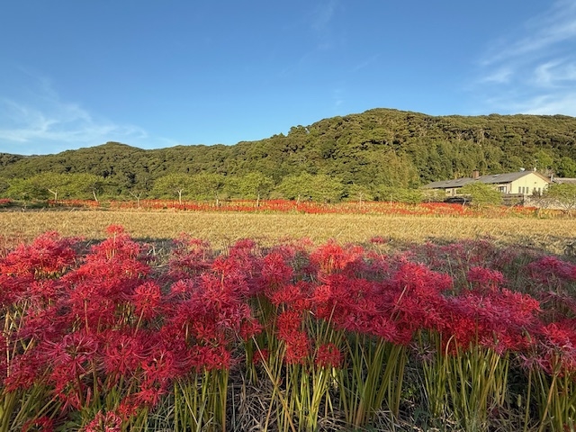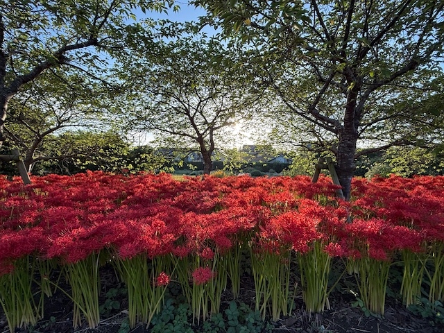 群生する真っ赤な彼岸花に、皆様「うわぁ!」と歓声(?)があがりました。