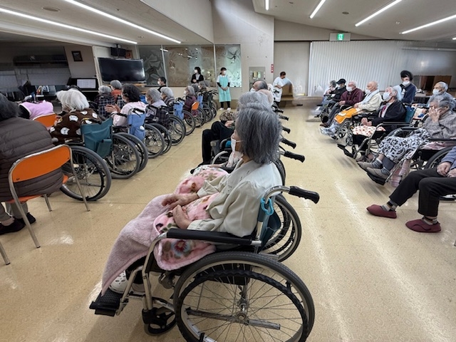 利用者の皆さんも一緒に口ずさんだり手拍子をしたり、最後は「ありがとうございます。また来てね。」と名残惜しくも、楽しい時間はあっという間に過ぎていきました。